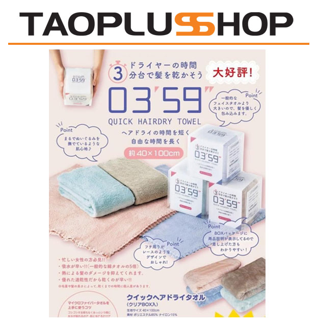 日本 03:59 快乾速乾吸水 头髮专用擦髮巾 快乾毛巾 速乾毛巾 吸水毛巾 头髮巾 专用 擦髮巾 0359吸水毛巾 乾髮巾 超强吸水 (不挑色) (2条)
